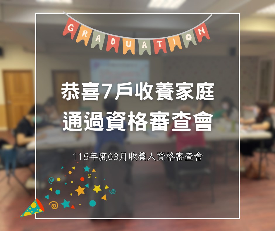 恭喜7戶家庭通過收養人資格審查會!